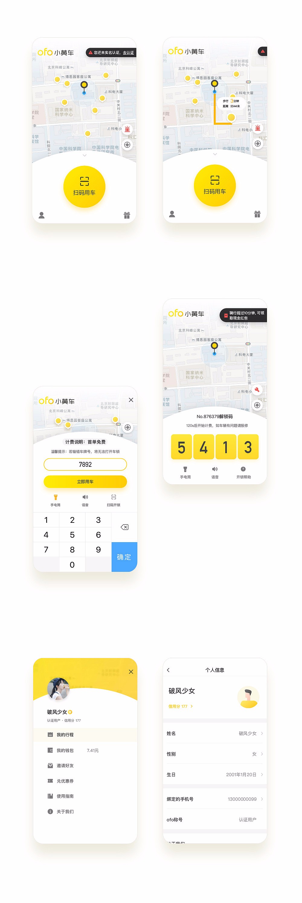 同時又將關鍵的操作高亮聚焦顯示,讓用戶在使用小黃車App的時候還能體會到便捷和輕松。