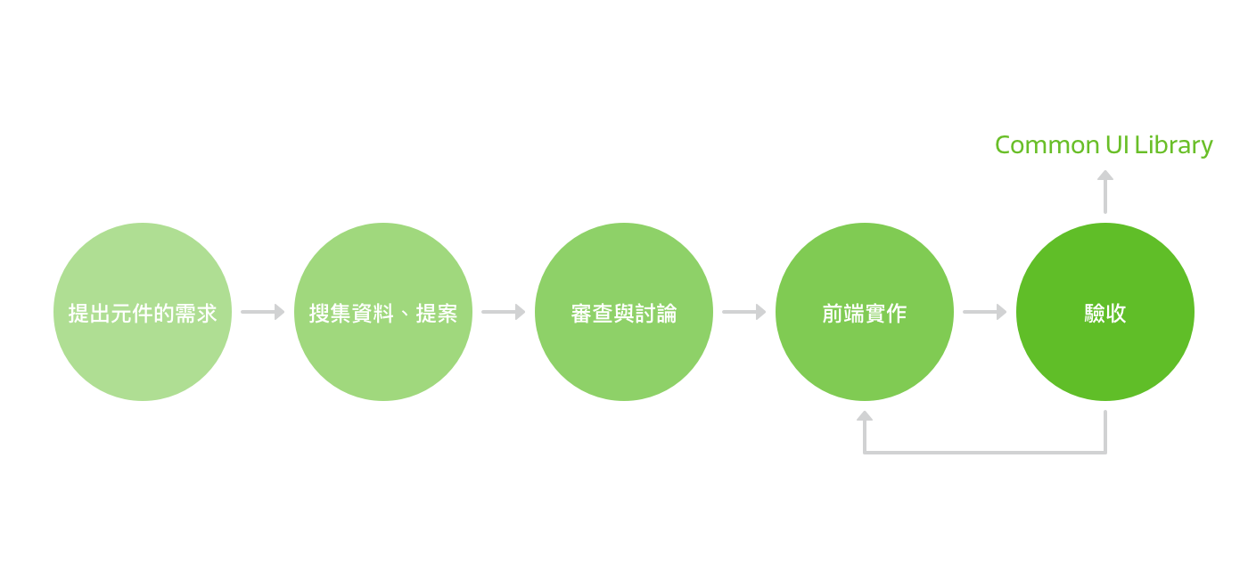 驗(yàn)收完成后才能Push到Common UI Library,這就是我們建立的流程。建立了內(nèi)部開(kāi)發(fā)使用的Common UI Library: MTKUI 后,除了加快前端的開(kāi)發(fā)速度外,最重要的是可以讓設(shè)計(jì)師將重心放在流程規(guī)劃的部分。
