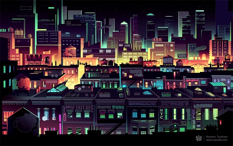 Romain是來自摩洛哥的一位插圖畫家,是一位熱愛城建筑的插圖設(shè)計師。他喜歡將每個城市描繪的炫彩多姿,從他的作品中可以看得出他使用漸變色彩大膽前衛(wèi)。而且已經(jīng)形成他的專屬設(shè)計風(fēng)格,在Behance里面很受歡迎。他的作品創(chuàng)作靈感大多來源于城市建筑,特別在夜晚的場景表現(xiàn)得非常出色。