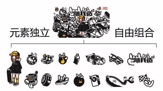 由于2016年跨界合作過程中,TGideas團(tuán)隊與合作方積累了較好的信任度,所以2017年的合作已經(jīng)開啟,基于去年的積累,今年的跨界合作我們更期望把“隨我造”變成一個平臺,能夠持續(xù)給游戲用戶帶來Vans所倡導(dǎo)的OFF THE WALL精神,并把這種精神落實到音樂、滑板、游戲等潮流文化的領(lǐng)域。設(shè)計團(tuán)隊為了能夠幫助活動達(dá)到預(yù)期,必須在2016年的基礎(chǔ)上,不斷輸出更加到位的視覺包裝與活動策劃建議。