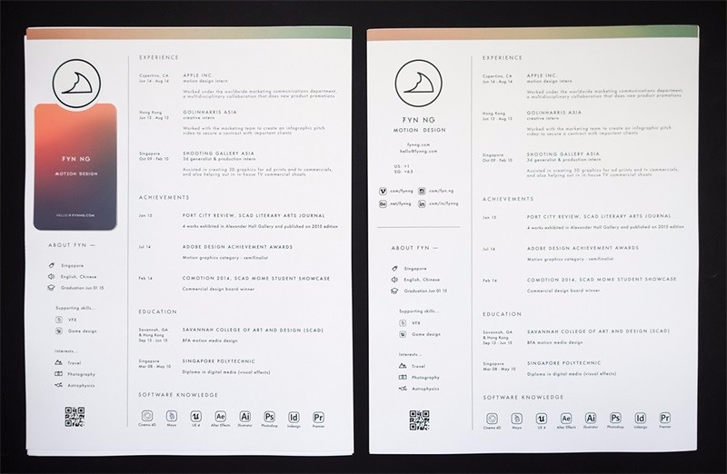 簡歷展示比較有意思,左邊是個人信息,右邊是工作經(jīng)歷。特別有意思一個點子就是個人信息卡片,是可以撕下來的,撕下來之后就像一張名片。如果你面試時候制作這么有意思簡歷,我相信這份簡歷讓你在面試中加分。