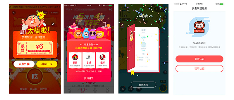 用戶在使用app完成自己“任務(wù)”時會得到不同的反饋,成功、失敗、或者驚喜等。此時插畫可以很好的傳達(dá)出這些信息,通過對于氛圍場景的繪制讓用戶即使不看文字也能知道大致的意思,同時精致的插畫可以讓用戶有更好的帶入感,不像單純的文字提示那么枯燥乏味。此類插畫與界面的設(shè)計(jì)需要符合整體所要傳達(dá)的氛圍及信息,不管是成功、失敗或者是獲的優(yōu)惠等;加強(qiáng)用戶的參與感,使產(chǎn)品與用戶的對話更加有人情味。