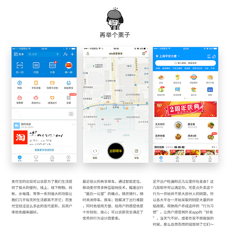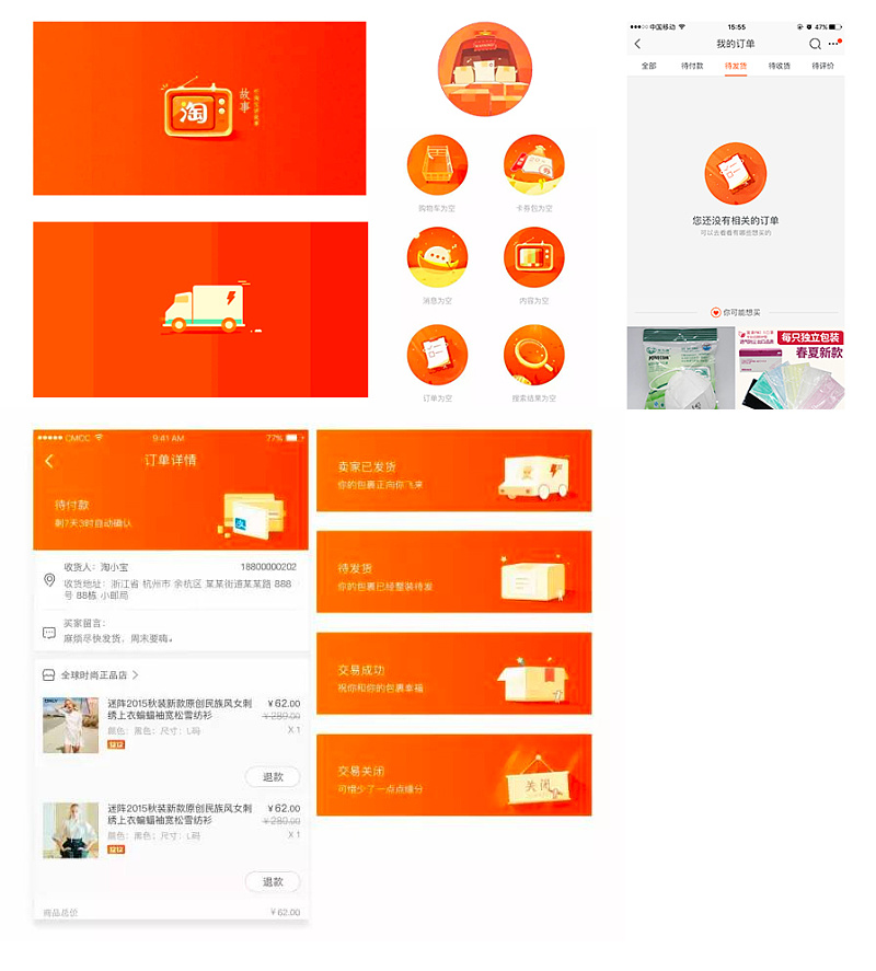 淘寶通過和諧小插畫傳達(dá)自己的“小情緒”,將這些有趣故事敘說給用戶,為用戶帶來更好的購物心情和體驗(yàn)。在界面中文字總是很容易被忽略,這些統(tǒng)一的小插圖,塑造除了一個有個性的產(chǎn)品,更加擬人化有人情味,相比冷漠的文字更能拉近與用戶的距離、引發(fā)情感上的共鳴。大家也可以搜索一下《淘寶2017UI設(shè)計(jì)風(fēng)格改版升級》這篇文章了解淘寶團(tuán)隊(duì)具體的執(zhí)行方案。以下圖片也是來自文章。