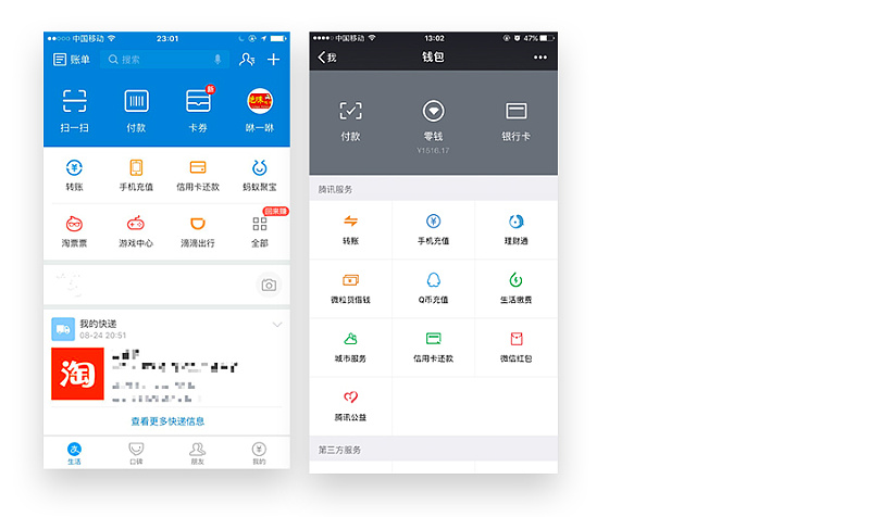 隨著不停的迭(hu)代(chao),支付寶和微信也可以說是越來越像,最主要量大功能則是支付與社交;但是并不是他們給了我們什么功能,我們就會去用。我們會去權(quán)衡利弊,哪個安全性高?哪個適宜理財?哪個方便社交?哪個方便朋友間aa聚餐或者轉(zhuǎn)賬等等。