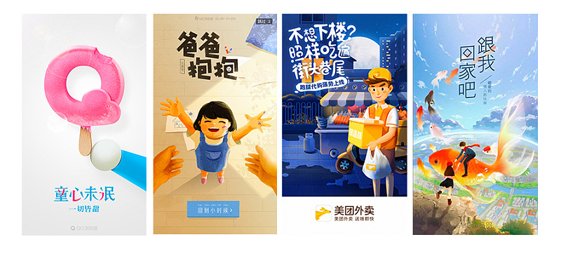 一款成熟的產(chǎn)品,肯定少不了百變啟動頁啦。每當(dāng)節(jié)假日或者一些特殊的活動時,都可以欣賞到各大廠賞心悅目的啟動頁。既是對外宣傳,也是在用戶心中建立品牌形象,拉近與用戶的距離。啟動頁只有短短的幾秒鐘,所以需要畫面能足夠的吸引眼球以及獲得用戶情感上的共鳴。這時插畫則是一個絕佳的選擇了,豐富的色彩、精致有趣的插畫比真實(shí)的場景多了一層想象的空間,勾起用戶的某段回憶或者感受,且更加親切易于接受。繪制此類插畫時需要考慮活動或節(jié)日面向的人群、產(chǎn)品調(diào)性、并且需要緊扣主題元素,讓人能夠在短暫的世界內(nèi)理解其傳單的含義。