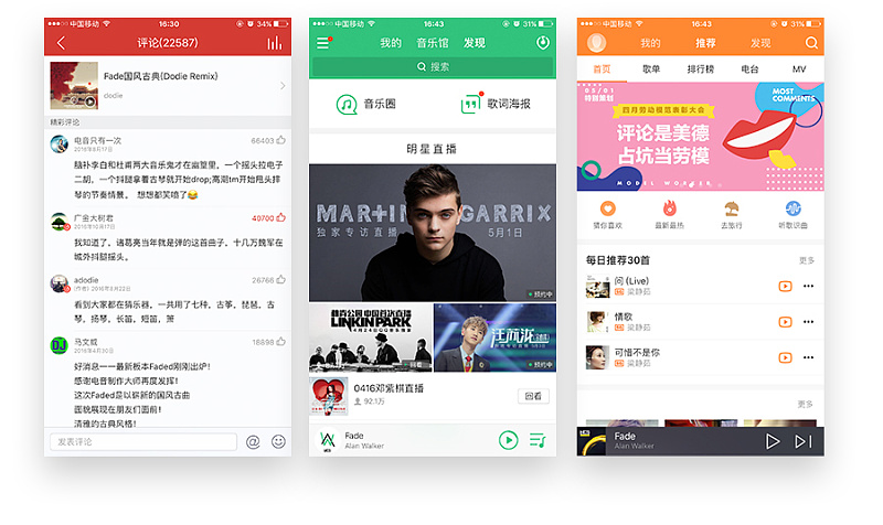 音樂市場的競爭也是十分激烈,我們可以看到無論是外觀還是功能其實(shí)大家都差不多,但是他們的用戶量和用戶群卻又不同。例如:我喜歡的歌曲版權(quán)歸屬、整個平臺的用戶氛圍、平臺的逼格屬性等等;用戶通過選擇自己喜歡的產(chǎn)品建立自我形象,甚至用某一個產(chǎn)品的用戶還是鄙視用其他產(chǎn)品的用戶,這些都是反思層次所做的決定。
