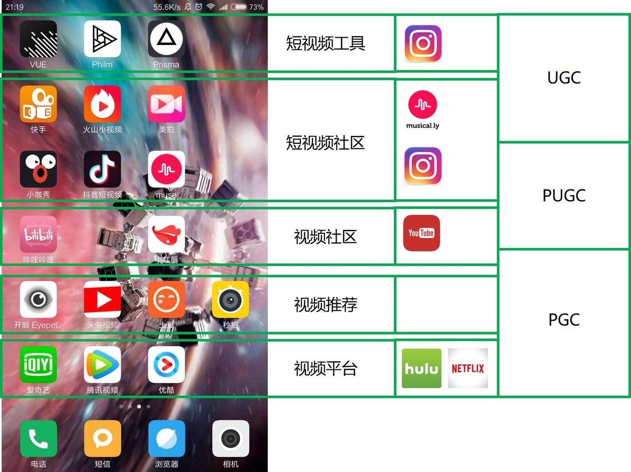 首先,我把現(xiàn)有的視頻行業(yè)刨除直播(直播還是找個(gè)時(shí)間單獨(dú)講吧),然后把行業(yè)粗略的分成五個(gè)子類: