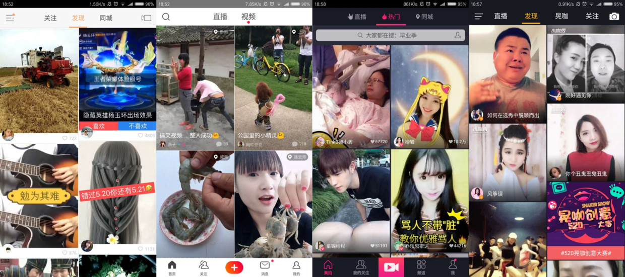 嗯,上邊三個(gè)分別是快手、火山、美拍。我不說,你們自己區(qū)分吧。