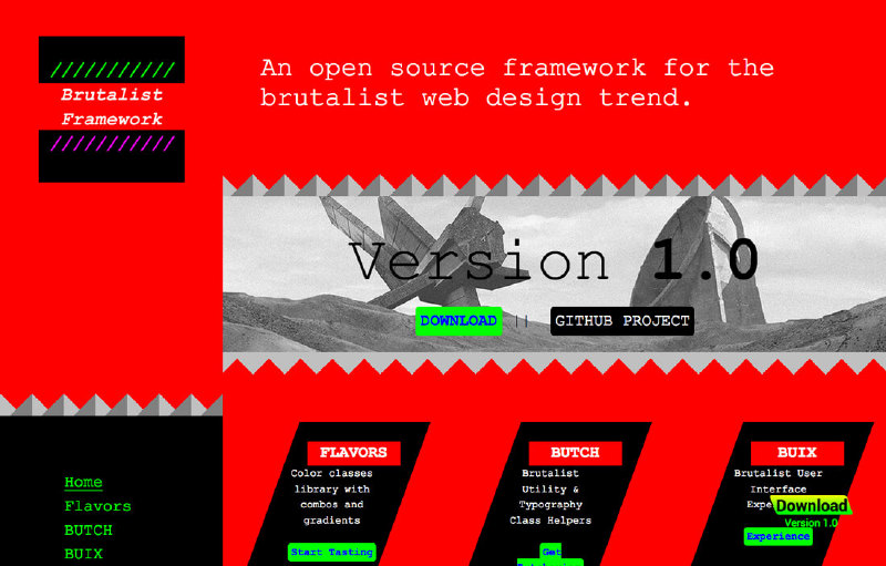這種設計正在流行,并還會持續(xù)流行下去。有一個名為 Brutalist Website 的網(wǎng)站專門搜集了粗野主義設計風的網(wǎng)站,這個網(wǎng)站中,粗野主義設計是這樣被描述的: