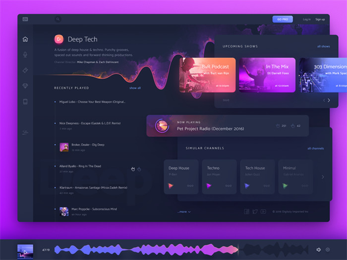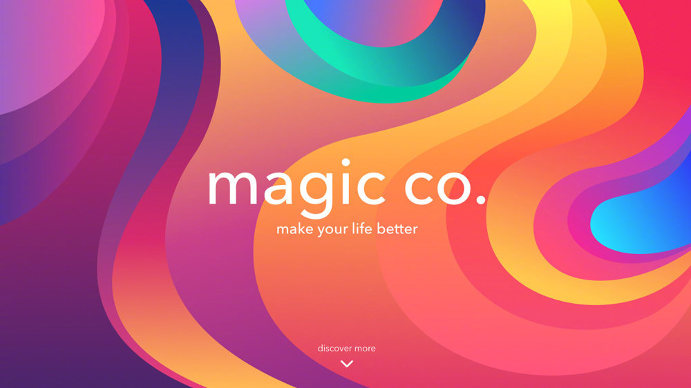 漸變用色,前面說到了同色相漸變、鄰近色相漸變,而多色相漸變在視覺上的表現(xiàn)力會更強(qiáng)一些,這類配色在Web 端運(yùn)用居多。