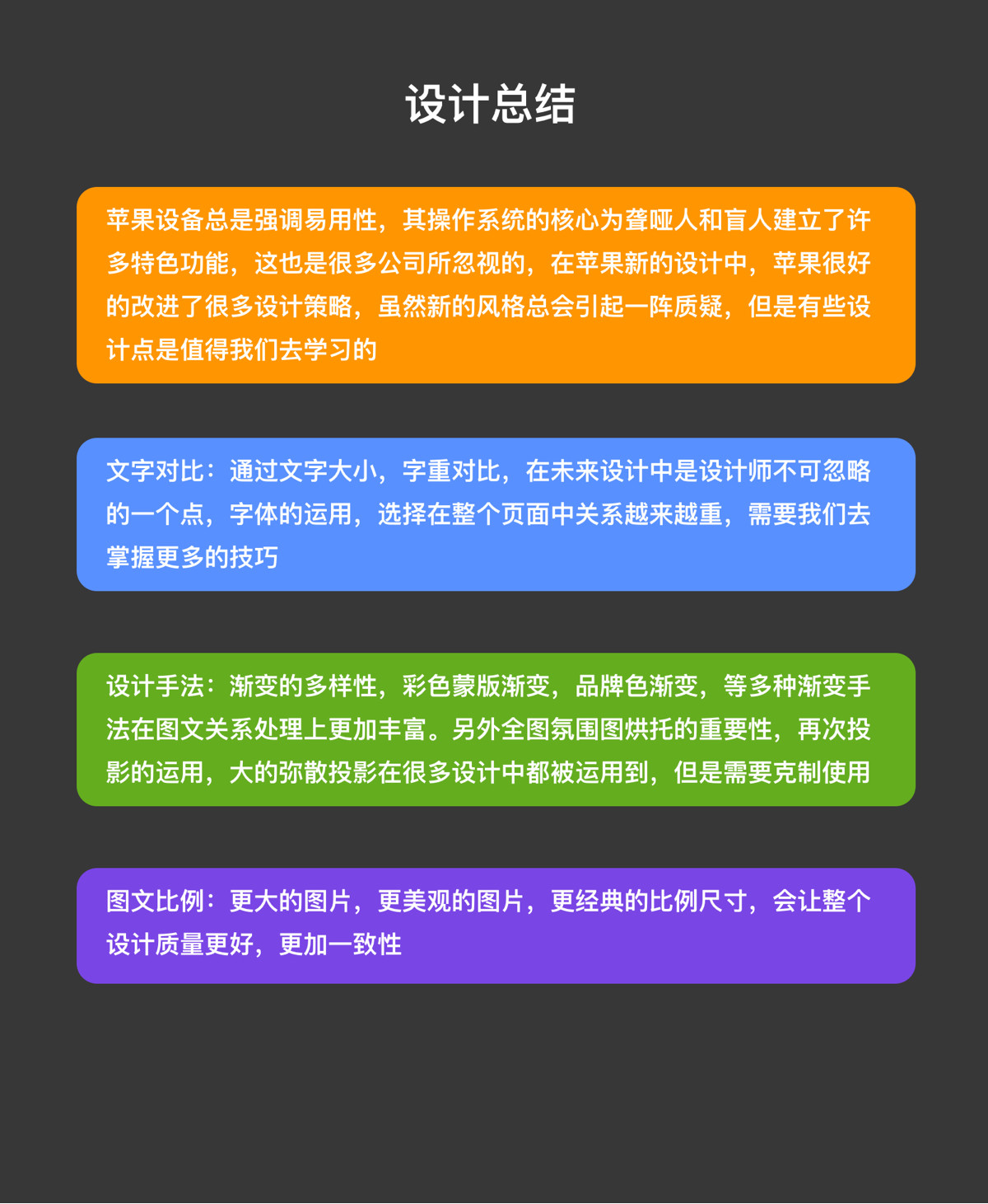 對(duì)于iOS新的風(fēng)格,其實(shí)早有研究,今天分享出來(lái),希望對(duì)大家有些啟發(fā),風(fēng)格一直在變,關(guān)鍵是我們要從風(fēng)格中學(xué)到那些我們能項(xiàng)目中運(yùn)用到的點(diǎn),去解決實(shí)際的問題,而不是盲目跟風(fēng)!其實(shí)趨勢(shì)分析歸分析研究歸研究,最重要是得出設(shè)計(jì)上策略!和方法,落地到自己項(xiàng)目中去,而不是看完就忘記了!