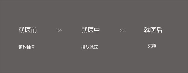 舉個(gè)例子,當(dāng)我們分析整個(gè)看病就醫(yī)的流程,就可以將整個(gè)場(chǎng)景分為“前中后”三個(gè)階段,如下圖: