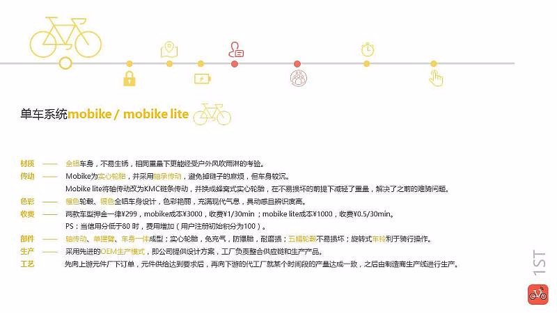 還有優(yōu)拜、小鳴、騎唄、Hellobike、Bulegogo、酷騎等,基本都是“無(wú)樁單車(chē)短途共享”模式,且車(chē)輛所有者為平臺(tái)方,產(chǎn)品設(shè)計(jì)上各有優(yōu)缺點(diǎn)。比如,一些人認(rèn)為摩拜單車(chē)顏值高、不容易損壞,但是車(chē)身重、造價(jià)高、騎行不是很舒適,ofo成本低、騎行舒適,但容易損壞。