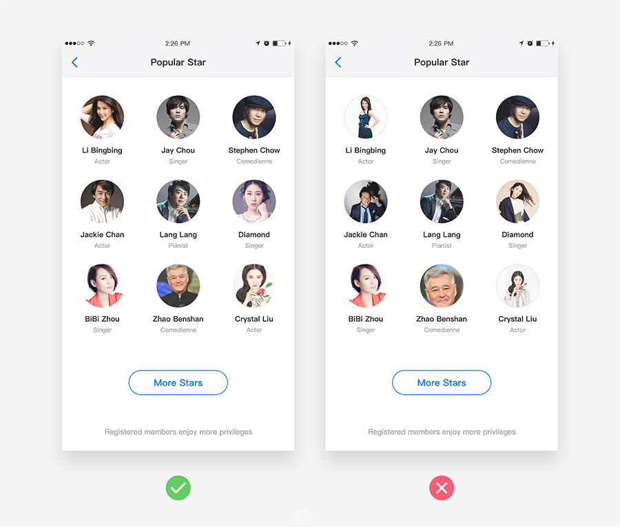 圖片的質(zhì)量影響著整個界面的格調(diào),現(xiàn)在越來越多的產(chǎn)品都會對圖片進(jìn)行美化后再展現(xiàn)給用戶,目的就是為了提升產(chǎn)品在用戶心中的印象。我們在設(shè)計(jì)提案的時候?qū)ε鋱D的選擇也要精挑細(xì)選,通過后期裁剪、曲線調(diào)整、色彩調(diào)整等技法使相同模塊的配圖視覺效果更加協(xié)調(diào)。