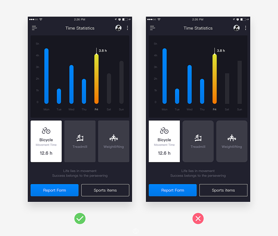 設(shè)計(jì)需要準(zhǔn)確的把握“度”,過度的設(shè)計(jì)會干擾信息的傳達(dá)。減少不必要的設(shè)計(jì)元素,讓信息脫引而出,整個界面將會更加簡潔清爽,也不會分散用戶的注意力。