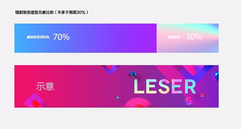確定了視覺風格的主思路之后,就是反復的嘗試。因為設計師發(fā)現(xiàn)一個問題,鐳射這個元素很炫酷,但是也很難駕馭,所以要保持克制,要high也要有原則。就有了不超過30%的畫面占比這個視覺原則。而在應用上,我們可以感受到這種撲面而來的歡樂,這就是節(jié)日該有的樣子。