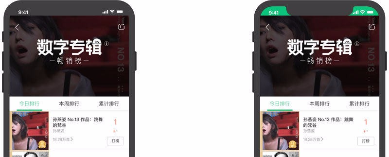 QQ 音樂團(tuán)隊(duì)設(shè)計(jì)師們做了一些研究工作,從方案對(duì)比選型到確定適配方案,都是希望能讓產(chǎn)品更好地適配 iPhone X。