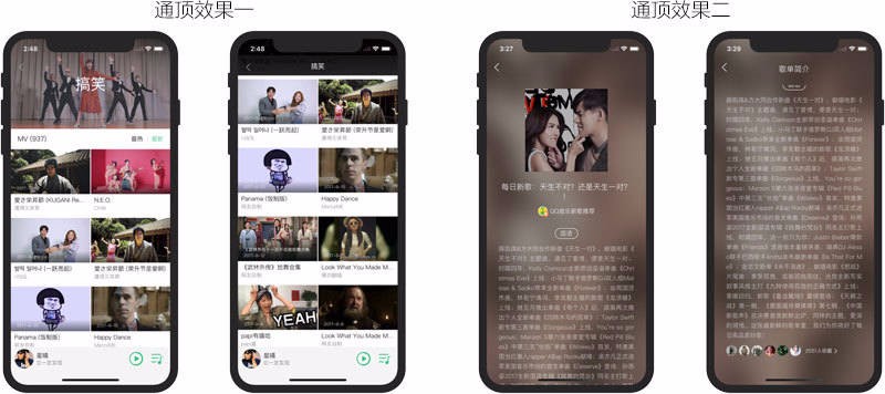 為了給用戶有更好的沉浸式體驗(yàn),QQ 音樂移動(dòng)終端內(nèi)有不少頁(yè)面具有通頂效果。
