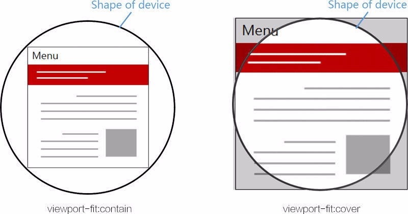 Apple 也意識(shí)到了這種尷尬的顯示方式,所以引入了一個(gè) meta 標(biāo)簽的 viewpoint 擴(kuò)展屬性——viewpoint-fit,在 iOS 11 中 viewpoint-fit 也官方添加到 CSS Round Display 規(guī)范中了。