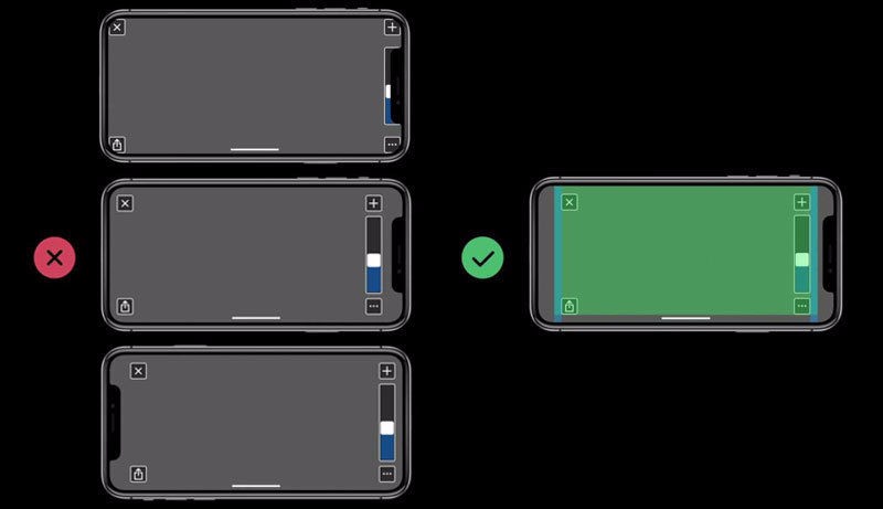 至于為什么沒有 “劉海兒” 一側(cè)也會(huì)留出空白位置,則是 Apple 認(rèn)為,“劉海兒”出現(xiàn)于左側(cè)或右側(cè)并不確定,讓安全區(qū)域中的內(nèi)容居中顯示,可以避免屏幕旋轉(zhuǎn)所造成的 UI 元素位置變化。