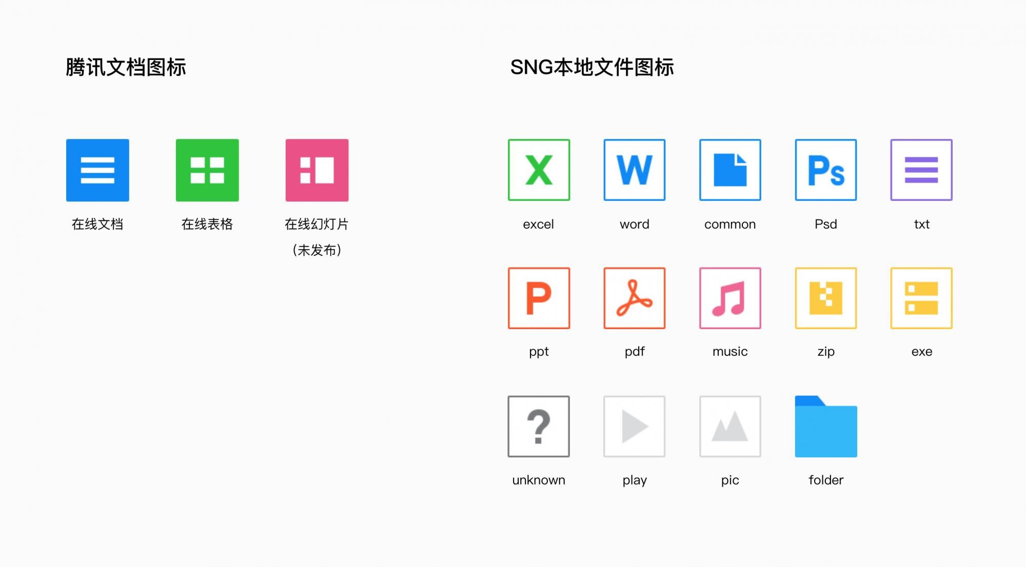 騰訊文檔的圖標(biāo),通過極簡的造型及鮮明的彩色,將信息傳達給用戶,并且呈現(xiàn)輕松的辦公感受。同時此次品牌建設(shè)對辦公類文件圖標(biāo)進行了系統(tǒng)性的統(tǒng)一設(shè)計,全新的在線及本地圖標(biāo)將應(yīng)用至騰訊文檔/TIM/QQ各端。