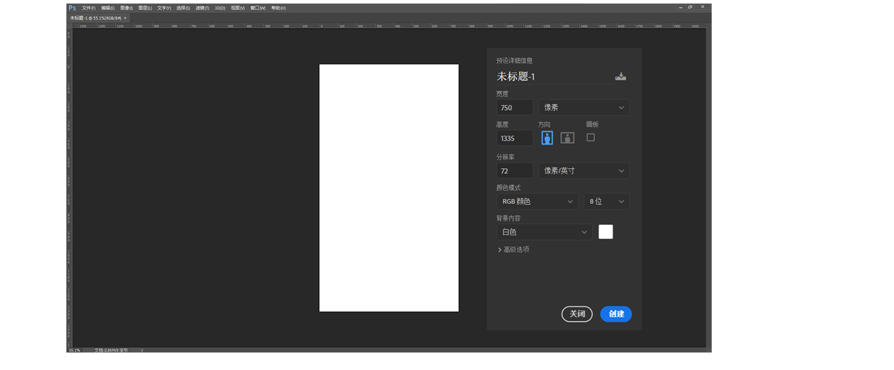 1在PS中ctrl+n建一個畫布為750*1335, 分辨率72。