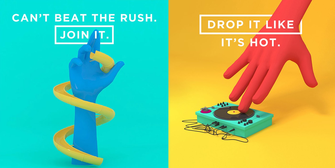 熒光色指的也是飽和度與明度比較高的顏色,以熒光綠最為常見,我們平常用的熒光筆就是綠色的,熒光色只有在黑白灰的背景上才能得到比較好的展現(xiàn)。這種色彩在運(yùn)動(dòng)品牌的設(shè)計(jì)中比較合適。