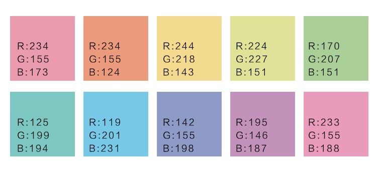 柔色從直觀感受來說就是那些看起來比較柔和、清新、舒適的顏色,這類顏色的明度和飽和度比較高,如粉色、淺紫色、淺綠色、淺藍(lán)色等等。適用于食品、護(hù)膚品類的設(shè)計(jì)。