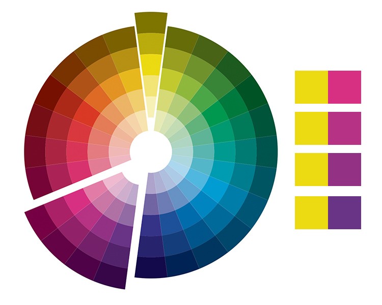 在色輪上夾角為120度-180度之間的兩個(gè)顏色被稱為對(duì)比色,比較典型的對(duì)比色有紅黃藍(lán)。關(guān)于對(duì)比色以往的主流用法是,一個(gè)顏色的明度和飽和度較高,而另一個(gè)顏色的明度和飽和度則相對(duì)較低。然而,近幾年這種高飽和度、同等明度的對(duì)比色搭配也變得非常流行,這種色彩組合的特點(diǎn)是年輕時(shí)尚,且具有很強(qiáng)的視覺沖擊力,廣受以年輕人為主要消費(fèi)群的品牌所青睞。