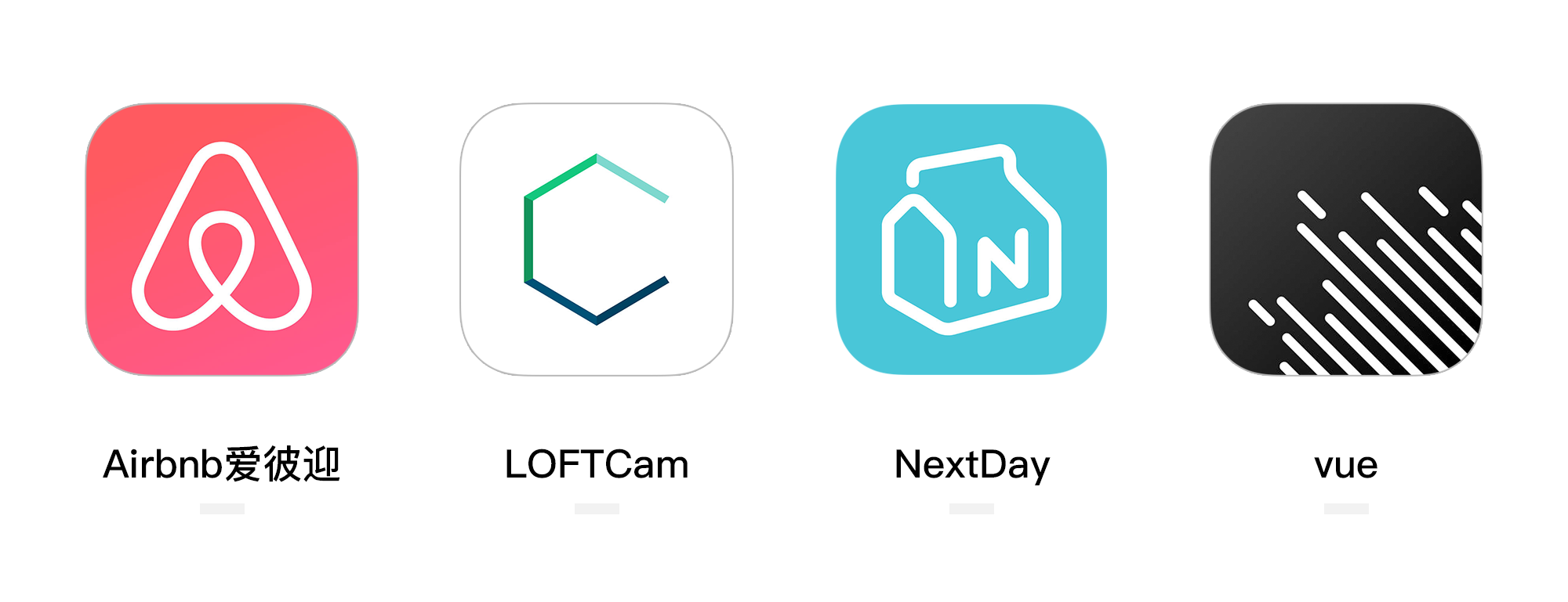 Airbnb、LOFTCam、NextDay、VUE的產(chǎn)品圖標(biāo)