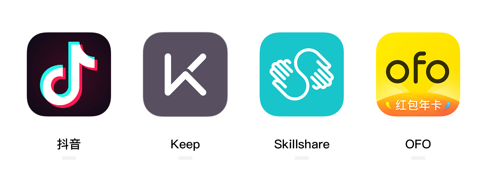 抖音、Keep、Skillshare、OFO的產(chǎn)品圖標(biāo)