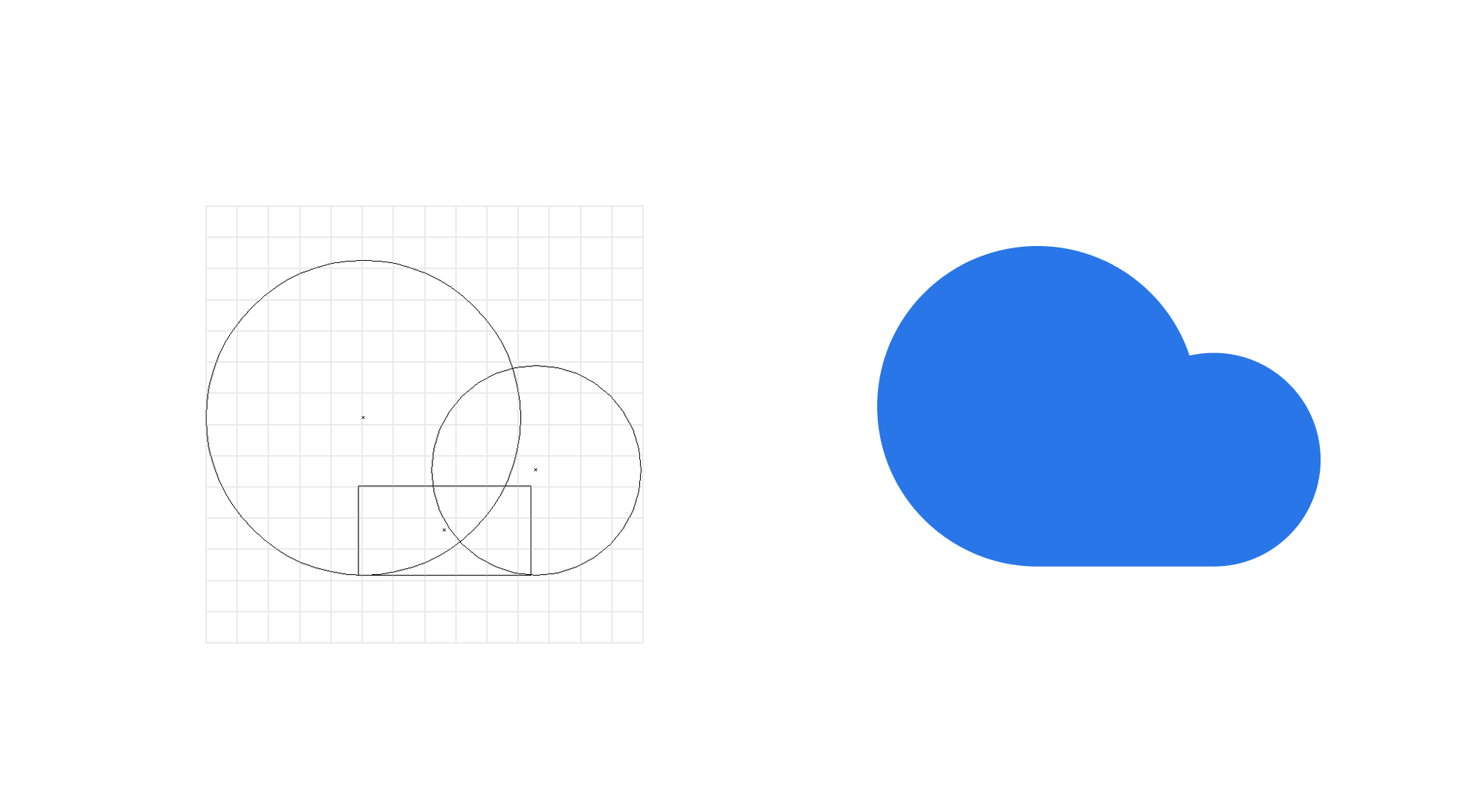 云彩圖標(biāo)的設(shè)計步驟:1.繪制兩個大小不同的圓形,使用對齊工具進行底部對齊。2.繪制一個矩形,同樣底部對齊。3.合并形狀,完成。