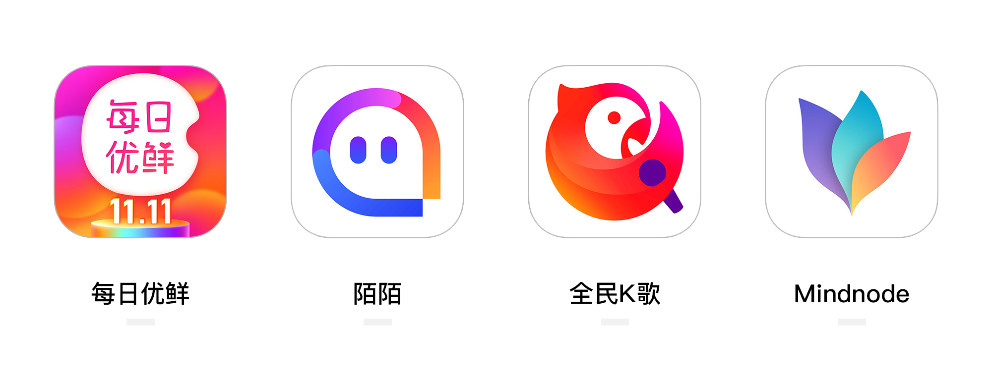 每日優(yōu)鮮、陌陌、全民K歌、Mindnode的產(chǎn)品圖標(biāo)