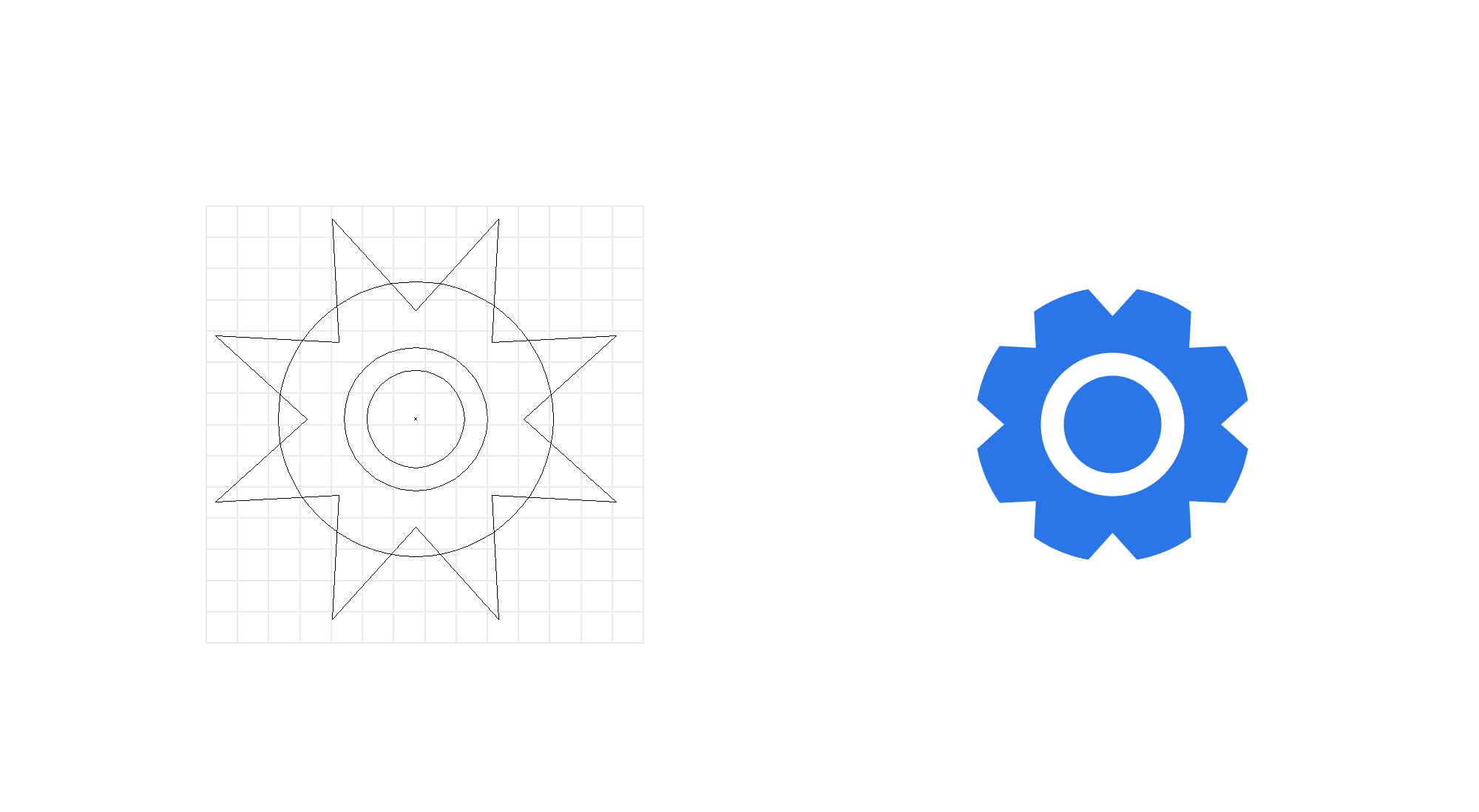 齒輪圖標(biāo)的設(shè)計步驟:1.用AI的爆炸圖形和圓形進行布爾運算畫出齒輪;2.用兩個圓形進行布爾運算做出里面的零件,完成。