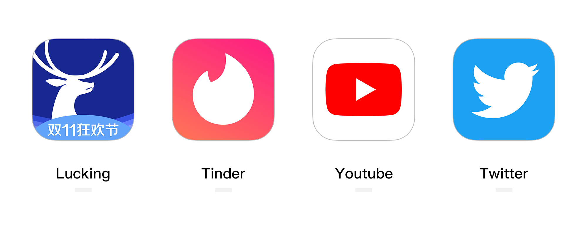 Lucking、Tinder、Youtube、Twitter的產(chǎn)品圖標(biāo)