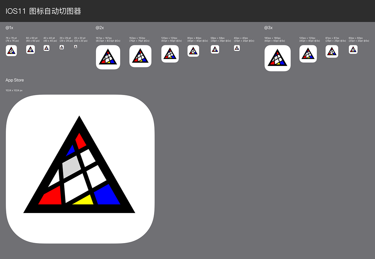 蘋果需要很多尺寸的圖標(biāo)用在不同的場景上,比如說在網(wǎng)頁端打開iTunes會使用512px的大圖標(biāo),而在手機、iPad桌面上的圖標(biāo)大小也不同。除了尺寸不同,這些圖標(biāo)的圓角也有不同的數(shù)值。為了簡化這部分的難度,蘋果為開發(fā)者提供了模板,有了模板就不用記那么多東西啦。蘋果官方HIG下載的這套資源中,有Template-AppIcons-iOS這個文件,這個文件提供了PS、Sketch、XD等不同格式。我比較推薦使用PS的格式。打開這個文件,用我們自己設(shè)計的啟動圖標(biāo)替換掉任意智能對象里的內(nèi)容(智能對象都是一個變出來的)。那么打開智能對象就是一個1024x1024px的矩形畫布,把我們的產(chǎn)品圖標(biāo)放在這里,保存這個智能對象再關(guān)閉它就可以了。這時,你會發(fā)現(xiàn)所有尺寸的圖標(biāo)都變成了我們的圖標(biāo)。然后我們把背景隱藏,切出這些圖標(biāo)即可。如果是AI完成的產(chǎn)品圖標(biāo)可以直接Ctrl+C然后在PS智能對象中Ctrl+V復(fù)制過來就行。