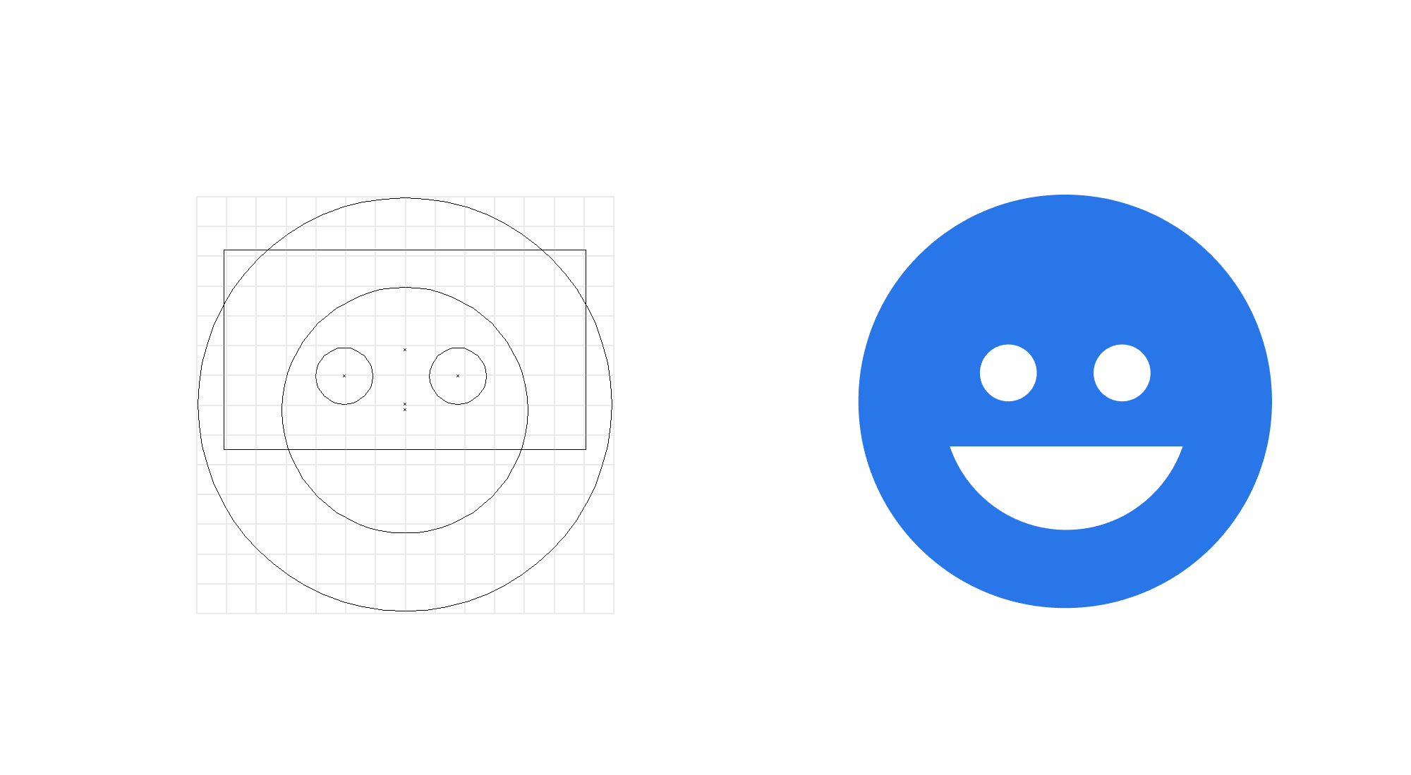 笑臉圖標(biāo)的設(shè)計步驟:1.畫出一個正圓。2.接著畫一個小圓然后ctrl+F復(fù)制平行移動到旁邊,然后右鍵編組。接著,同時選中大圓和編組的小圓進行水平居中對齊。3.我們繪制一個圓形,然后通過布爾運算減去一個矩形得到半圓形組成嘴,完成。