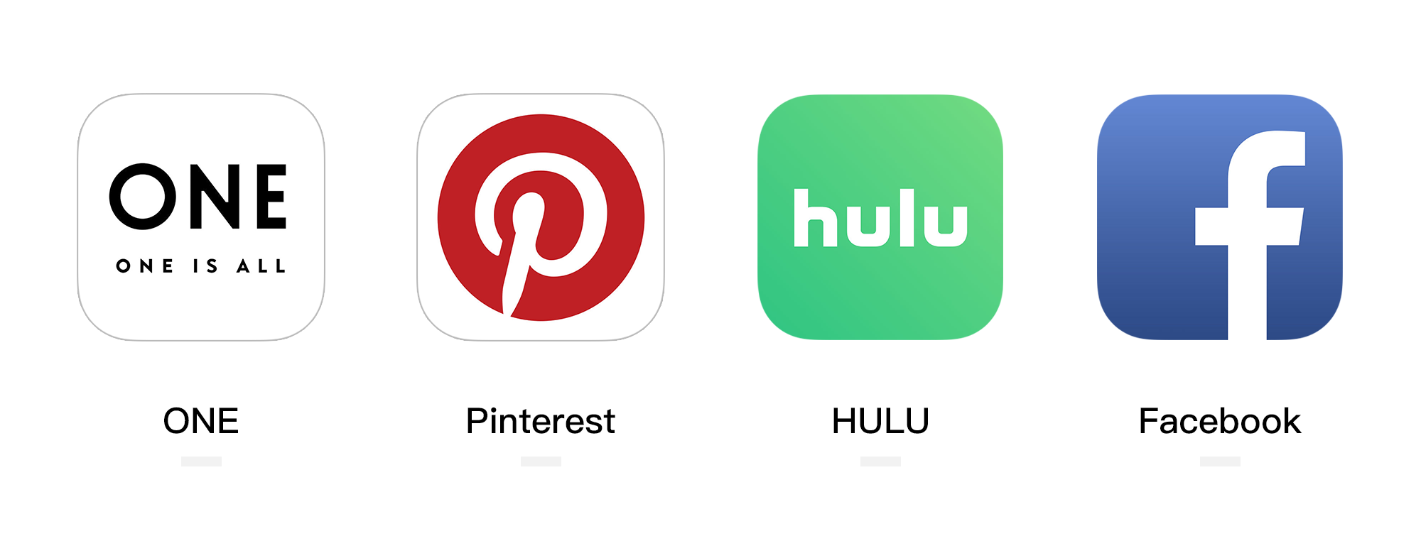 ONE、Pinterest、HULU、Facebook的產(chǎn)品圖標(biāo)