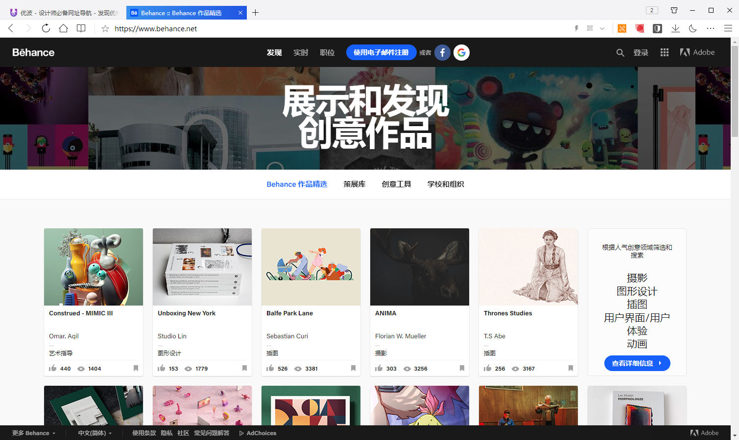 所幸的是,有網(wǎng)友分享了一個(gè)不需要任何工具就能連上Behance的方法,