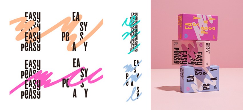 Korea's leading cosmetics company(Amore)’s independent cosmetic brand 'easy peasy' tried to make this color cosmetics brand feel easier and more familiar based on their brand keywords easy, active, fun, bold and chat. In particular, the curves that seem to be drawn freely by hand applied throughout the branding system make all the graphics asymmetrical and express free and friendly brand image.