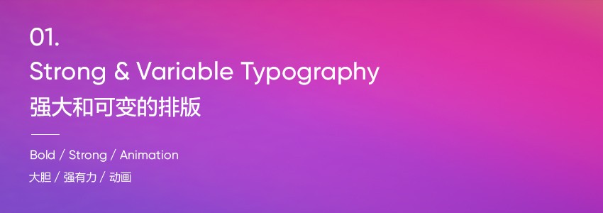 排版一直是設計的重要元素,,也是傳達品牌強烈信息的手段。從去年開始,粗大的無襯線字體和強有力的排版被應用到許多品牌設計當中,這使得它成為平面設計趨勢的一部分。此外,也有越來越多的品牌采用動態(tài)和反映了3D趨勢的三維字體版式設計。