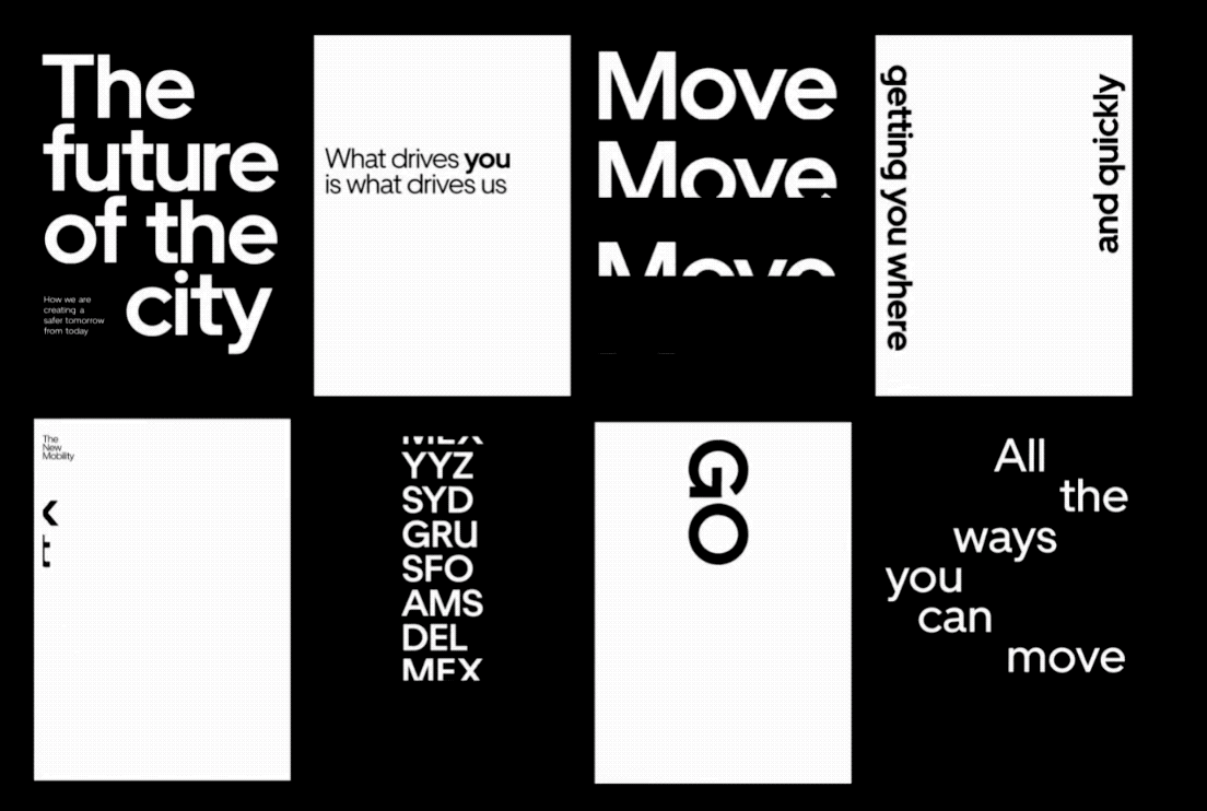 Uber developed san-serif brand fonts along with logo redesign and applied them throughout the brand system. Uber's moving posters designed with their brand font strongly deliver Uber’s brand messages.