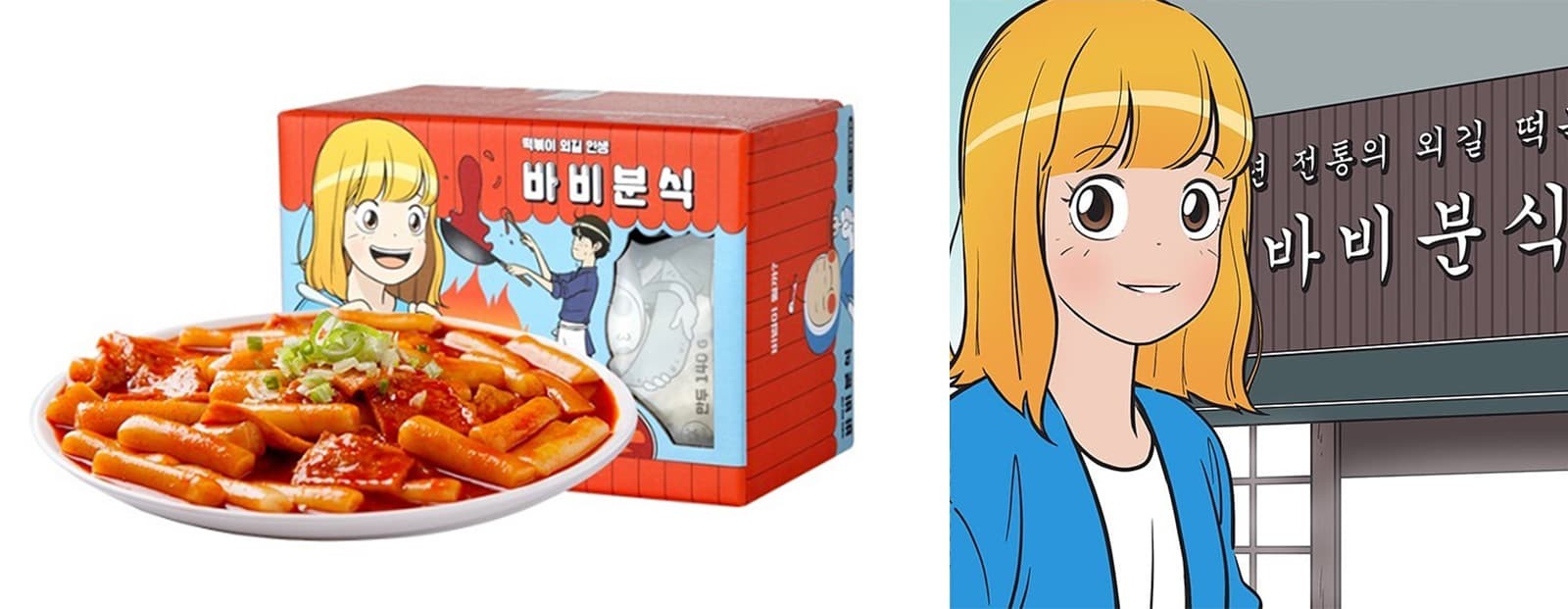 韓國網(wǎng)絡(luò)漫畫平臺Naver Webtoon,用人氣漫畫《Yumi's cell》的部分故事做了一款Babi 小吃,這是一款出現(xiàn)在webtoon上的產(chǎn)品,它嘗試在口味上與有著30多年歷史的傳統(tǒng)炒年糕保持一致?!禮umi's cells》在故事中用描述炒年糕哲學(xué)和絕佳美味的方式來吸引讀者,目前,這款炒年糕正在網(wǎng)上商店出售,為了Yumi's cells的粉絲, Babi餐車已在全國各地巡游了6個月。