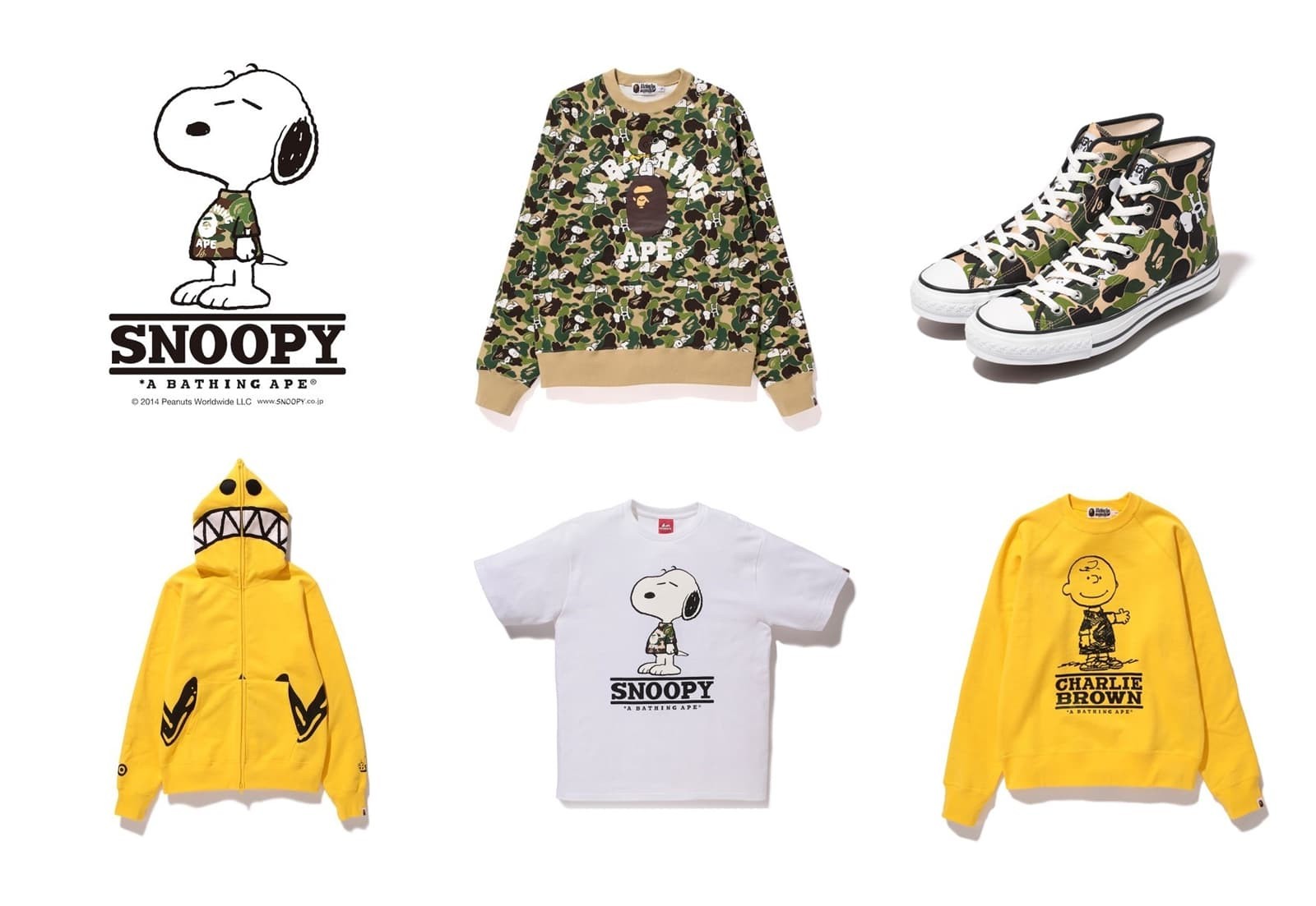 A well known street fashion brand Bape, which is famous for their gorilla character logo and patterns, has done a collaboration to celebrate the 20th anniversary of Snoopy. Bape applied their unique camo pattern with the Snoopy characters and applied to various products.
