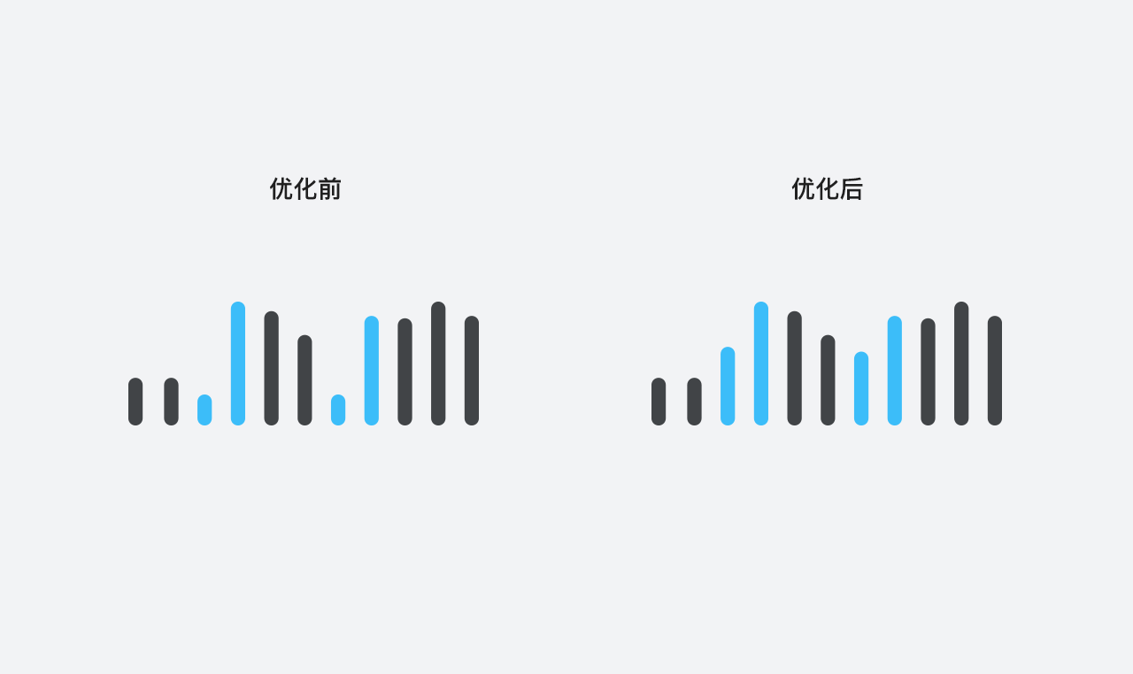 呈現(xiàn)準(zhǔn)確音量的聲紋無法滿足我們預(yù)期中的流暢視覺體驗,反而會讓用戶感覺到多變聲紋信息帶來的壓力?;貧w設(shè)計目標(biāo),聲紋是為了幫助用戶識別有效語音片段,因此有聲音和無聲音的聲紋對比很重要。這也意味著對于正常音量區(qū)間的聲音,我們可以適當(dāng)犧牲準(zhǔn)確性以確保良好的視覺體驗。