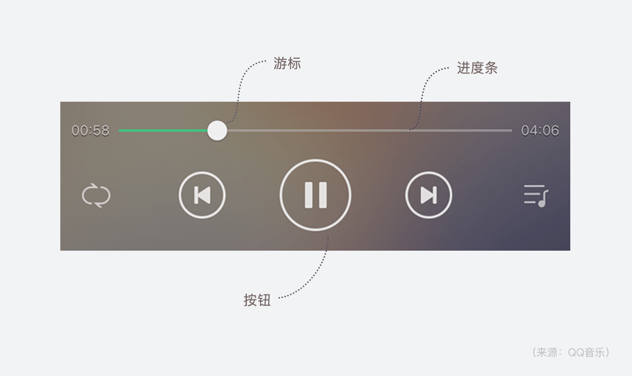 QQ擁有廣泛的用戶群,所有功能都要盡量降低用戶的學(xué)習(xí)成本。更何況由于沒有其他國民級APP的相似特性可以類比,對用戶來說語音進(jìn)度調(diào)節(jié)不只是一個新功能,更是一種新模式。在這種背景下,功能的易學(xué)性顯得尤為重要。怎樣讓用戶一眼就明白語音消息可以暫停并拖動呢?怎樣讓操作更加直覺化?我們不妨從用戶熟悉的事物入手,進(jìn)行聯(lián)想。