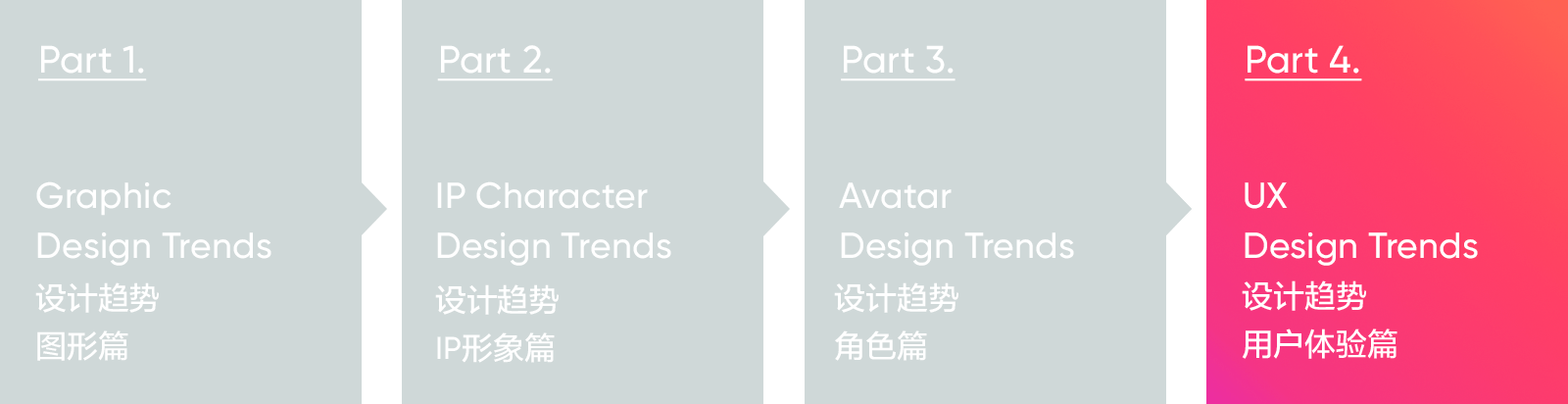 User experience is the feelings of users when using products, under the joint action of products, people and the environment. As technologies develop, and new products and services emerge in an endless stream, the behavior and psychology of consumers are constantly changing. We will analyze and summarize the user experience trends from four latitudes: technology, hardware, environment and users. In this changeable industry, we have to understand these trends when we are designing and improving new designs, and preparing for the upcoming future.