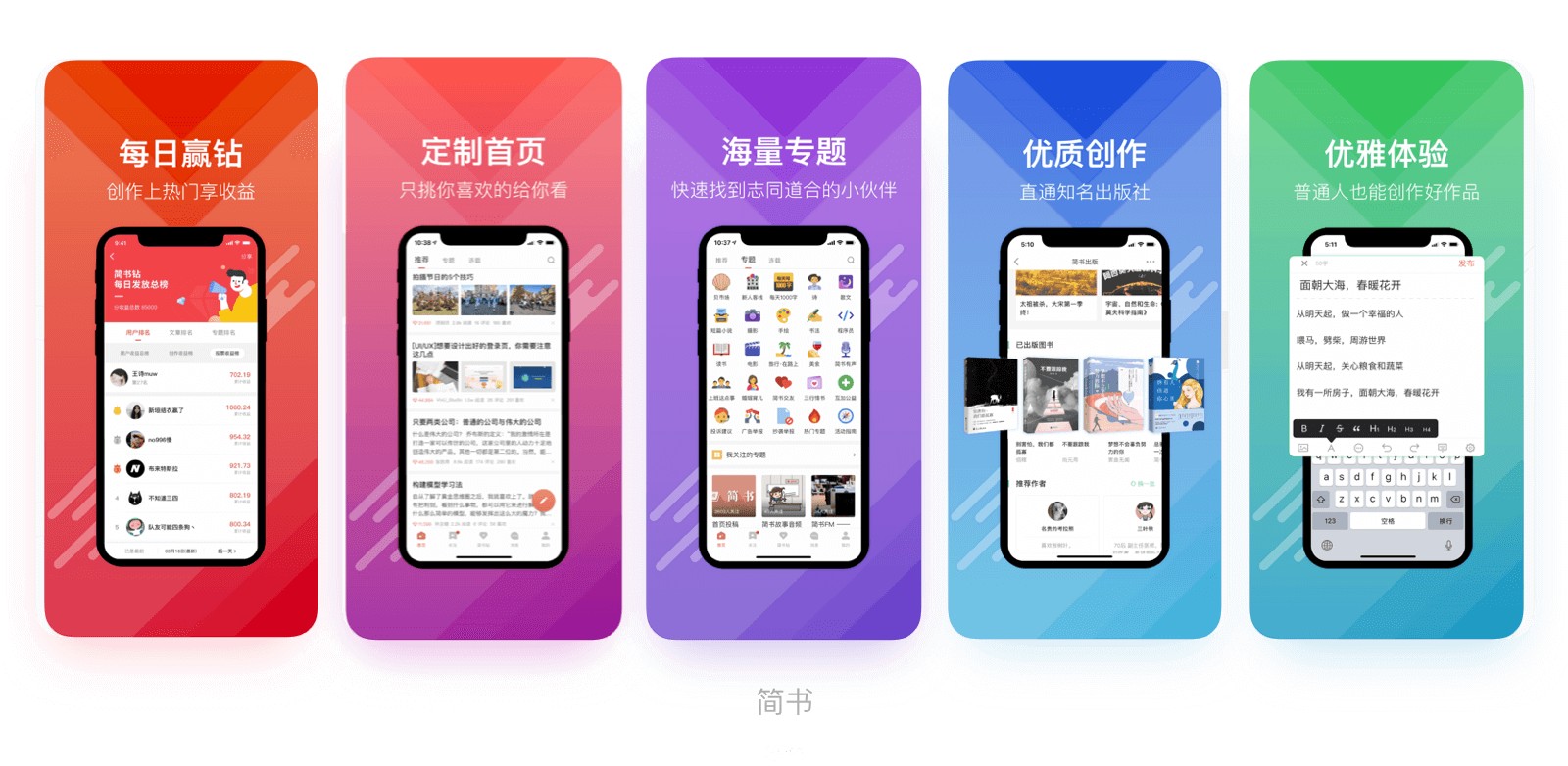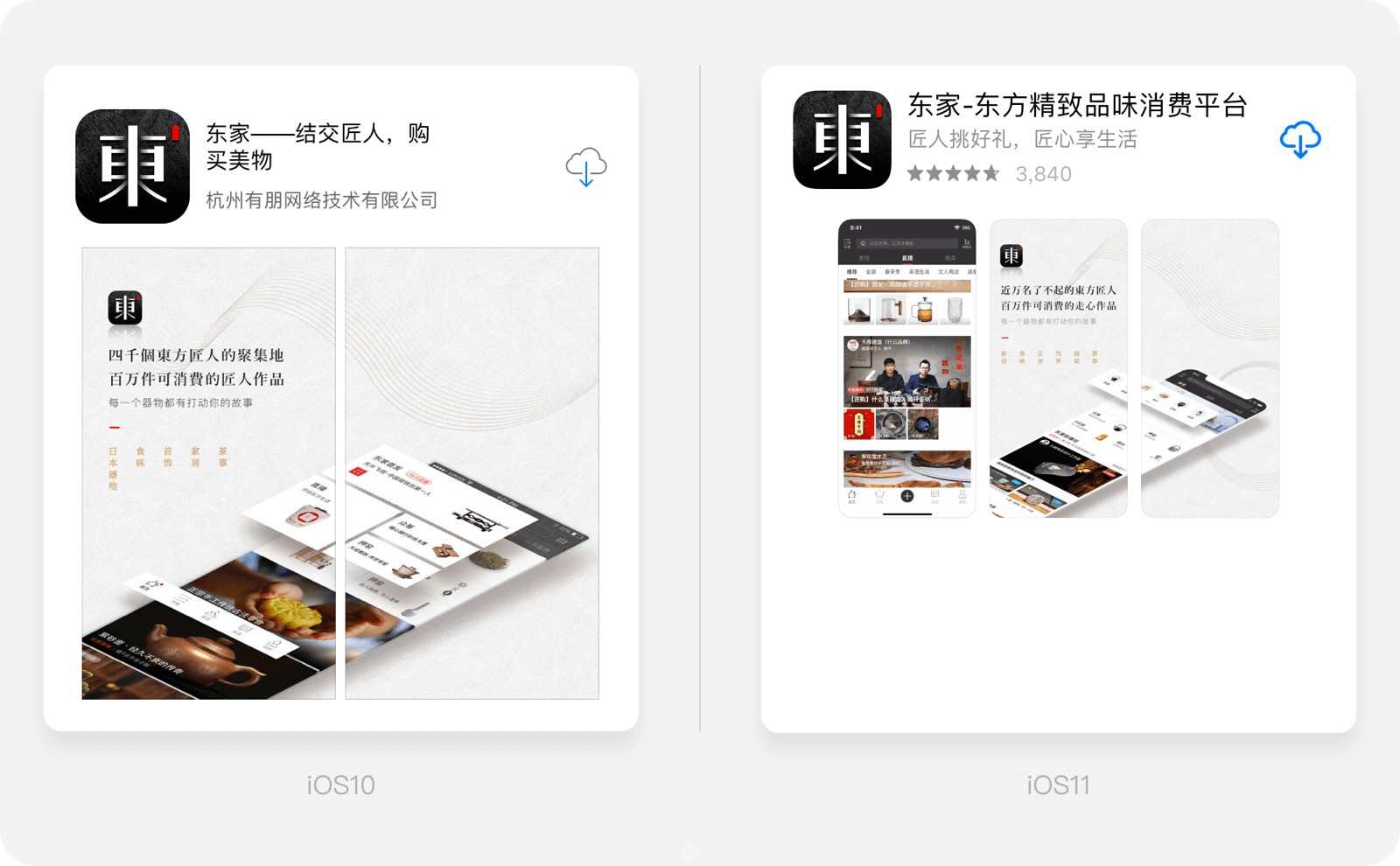 這種樣式設(shè)計感較強(qiáng)有很大的發(fā)揮的空間,利用元素形成視覺中心,強(qiáng)調(diào)主題內(nèi)容,形式活潑變化豐富,可以形成強(qiáng)烈的視覺效果吸引用戶。但加入內(nèi)容元素后,界面截圖的展示相對會較小,同時設(shè)計成本較高。后面各平臺有些較特殊尺寸的圖,內(nèi)容元素可能會需要單獨調(diào)整,花費時間較多,前面提到的狀態(tài)欄、手機(jī)框的問題都需要注意。