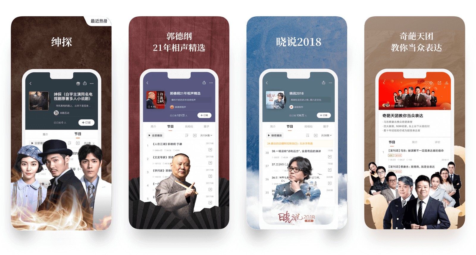喜馬拉雅利用人物元素結(jié)合不同背景顏色及材質(zhì)突出主題內(nèi)容,以及對不同定位的內(nèi)容采取的不同的設(shè)計風(fēng)格,讓設(shè)計風(fēng)格更加符合內(nèi)容主題更加契合。