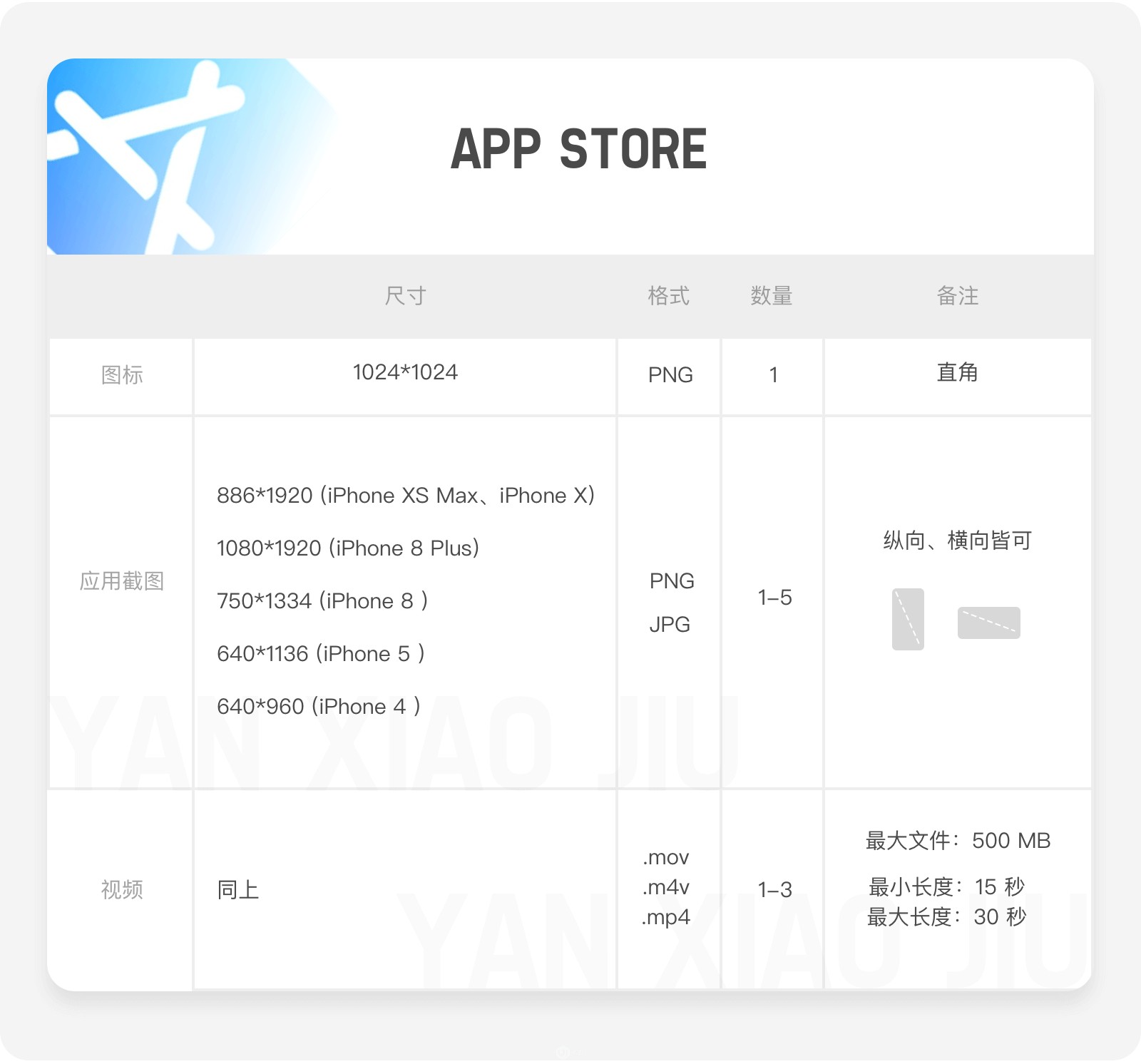 應(yīng)用截圖&視頻:尺寸如下圖所示,1080*1920,750*1334,640*1136,這三個都是同比例的準(zhǔn)備一套圖再進(jìn)行縮放就可以,需要特殊處理的是iPhone X 886*1920以及iPhone 4 640*960兩個尺寸,而且注意iPhone X的狀態(tài)欄也需要是對應(yīng)的。